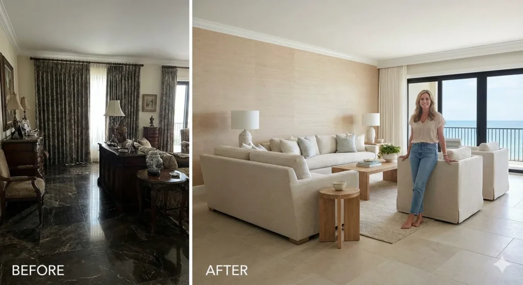 "For years, my living room felt like it was having an argument with the view outside," says Elena, standing in the center of her sun-drenched Naples home, a stone’s throw from the Gulf.